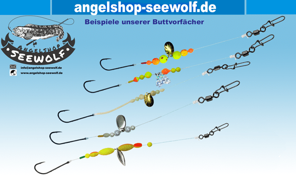 Buttlöffel-Vorfach 100g Hakengröße 4/0 Schnur 29KG mit Lockperlen und Spinnerblättchen