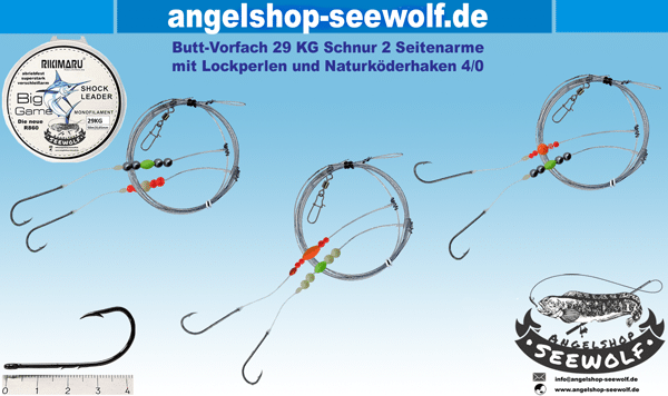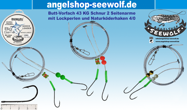 Butt- Brandungs-Vorfach Länge 1,20m Schnur 43KG Hakengröße 4/0 2 Seitenarme mit Lockperlen